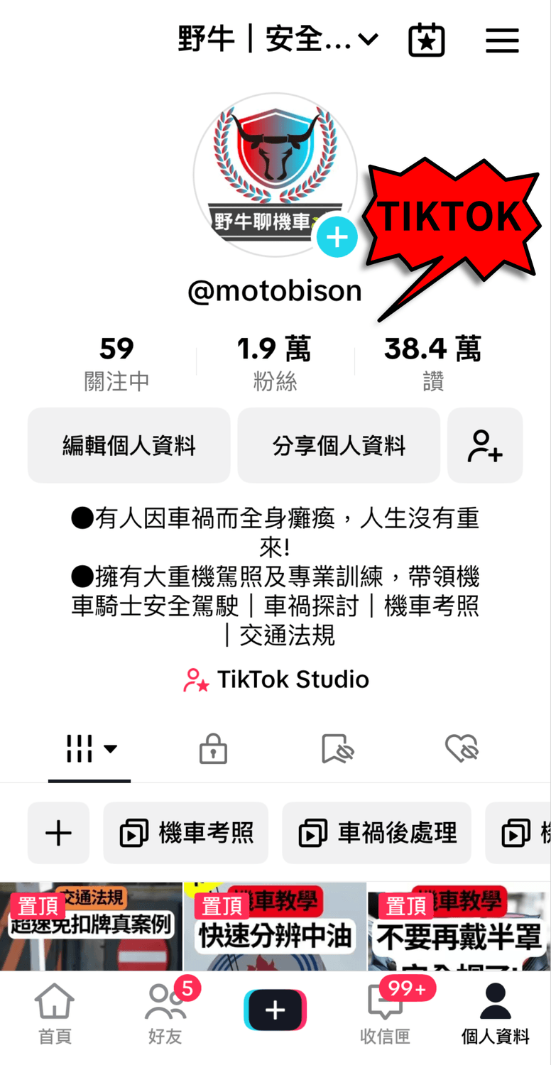 於是,我參加了三次各為期5天的「大型重型機車駕駛訓練」。同時,我在 TikTok 上累積了 1.9 萬名粉絲,並在 Google Play圖書出版《機車駕照筆試100題易錯考題解析》電子書。