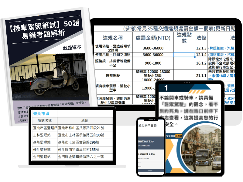 從駕照筆試考題、找體檢處所、搞懂常見交通罰則,到實際上路前的觀念整理,一次打包帶走。
